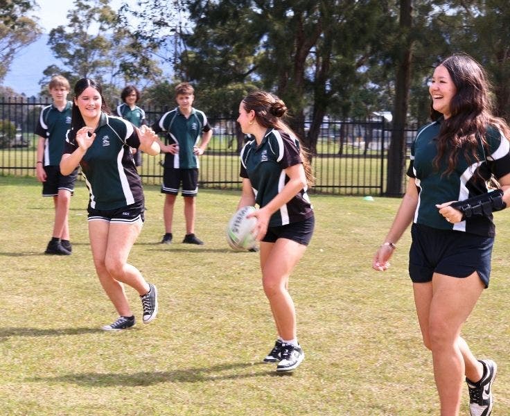 Our students enjoy a wide range of sporting opportunities on campus, with access to the Brett Lee Oval, a full soccer field, basketball and netball courts, and outdoor volleyball courts. With Lake Illawarra as the backdrop to many of our outdoor activities, students can take part in sport in a setting that is both active and inspiring. Whether training for competition or enjoying a friendly game at lunchtime, our students have plenty of space to move, play and grow.
