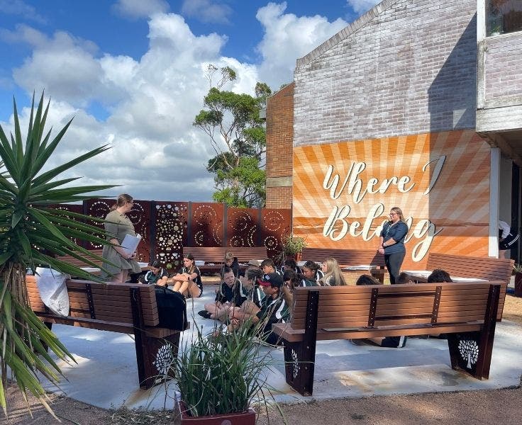 Our Wellbeing Circle is an outdoor learning space nestled beside the Information Centre and school farm. It provides a beautiful, natural setting for class activities, group discussions, and wellbeing-focused programs, giving students a calm and inspiring place to connect, reflect, and learn together.